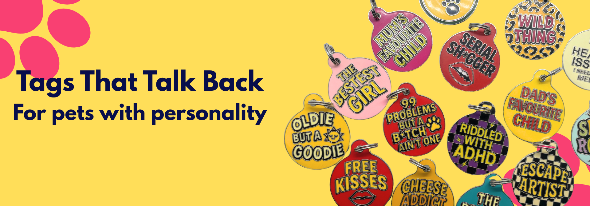 Our tags aren’t boring. They’re bold, funny, and full of attitude — just like your pet.